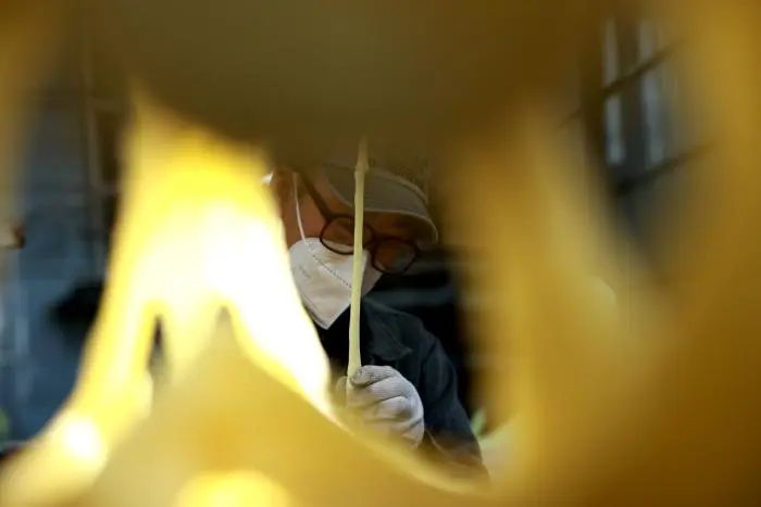 制作车间内,忙碌的工人。