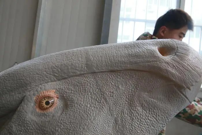 在海百合,车间里的半成品都是罕见的“高大上”——恐龙复原模型林立,翼龙、棘龙、锦州龙、中国角龙、山东龙、鸭嘴龙、小驰龙、霸王龙……身长动辄几十米,让游人如同闯入了白垩纪、侏罗纪。