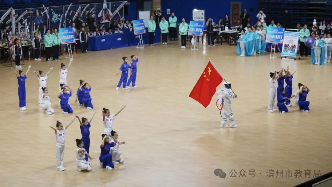 开幕式上,无棣县第三实验小学《我的航天梦》、清华园学校《科创拥抱生活》、第一实验小学《科技少年仰望星空》、第二实验小学《科技大战僵尸》创意表演和职业中专无人机灯光秀,将编程、航天、人工智能等元素巧妙融入表演之中,展现出青少年眼中的科技梦想与创新激情。