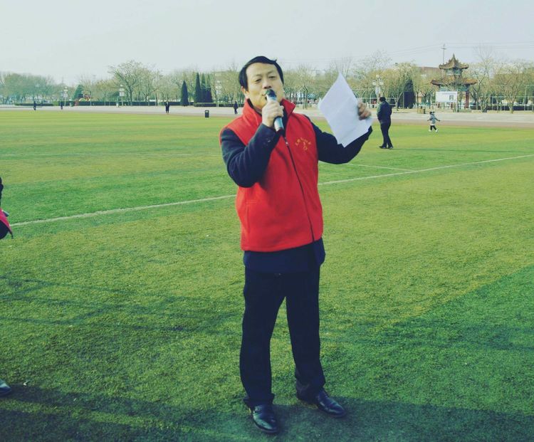 长跑运动协会宣传员杜宝富在宣读本次活动的实施方案并讲解活动中的注意事项。
