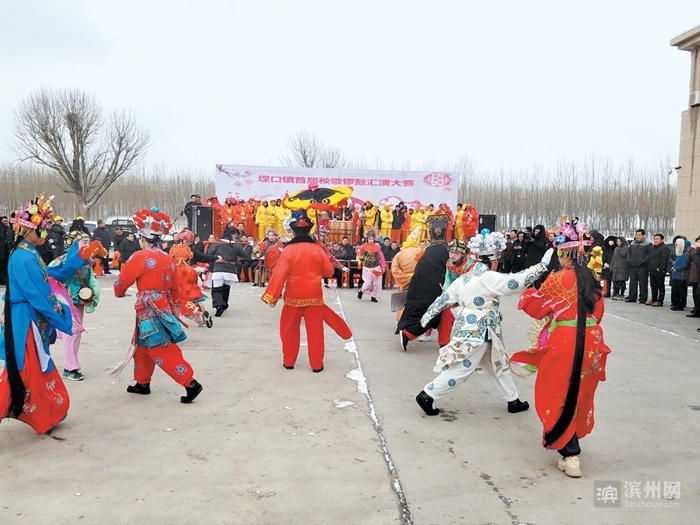滨州日报/滨州网讯 2月13日,无棣县埕口镇首届锣鼓秧歌大赛开幕,来自该镇9个村12个代表队的135名队员敲着锣鼓、扭着秧歌,共庆新春佳节。12支队伍通过斗舞、自我展示等,最终产生了4个钻石奖、4个金奖、4个银奖。