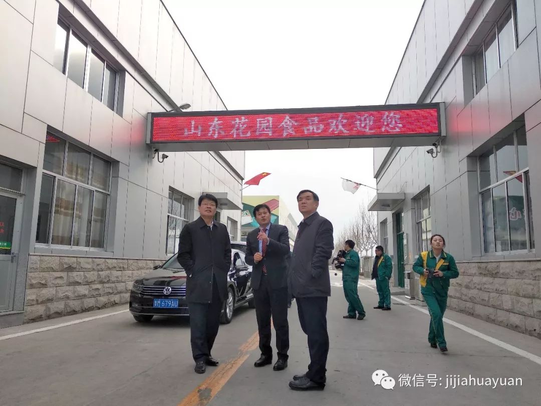 2019年2月18日,新任中共无棣县委书记丁锋在县委常委、县委办公室主任王福瑞及信阳镇党委书记李新峰陪同下莅临山东花园食品公司视察指导。