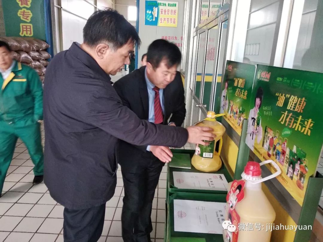 丁书记对公司产品小榨花生油不含黄曲霉素产生浓厚的兴趣