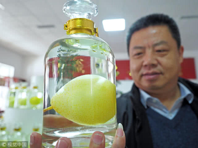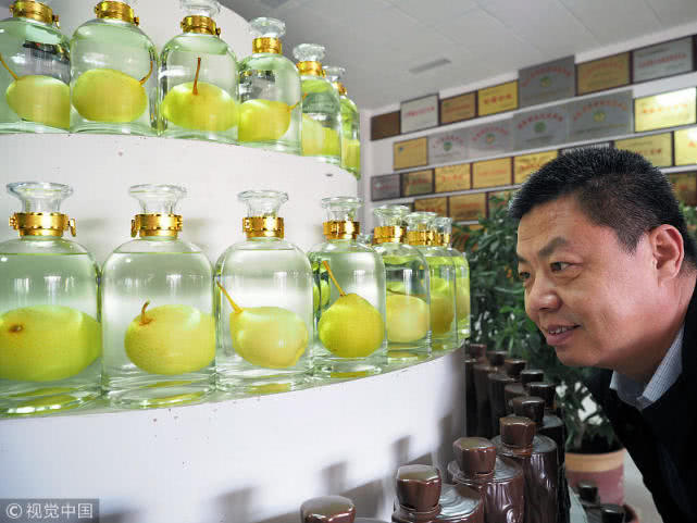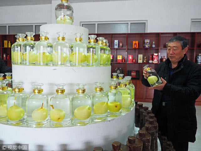 春节临近,这家公司专门推出一款梨长到瓶子里的酒,试图抢占节日市场。 (来自:新闻摄影)
