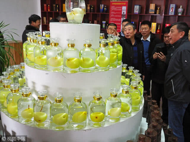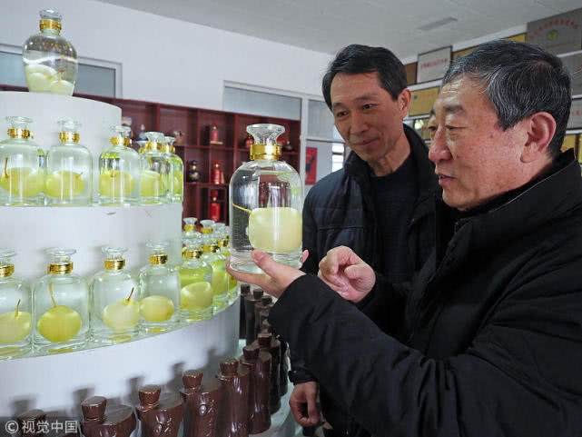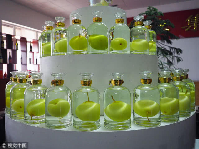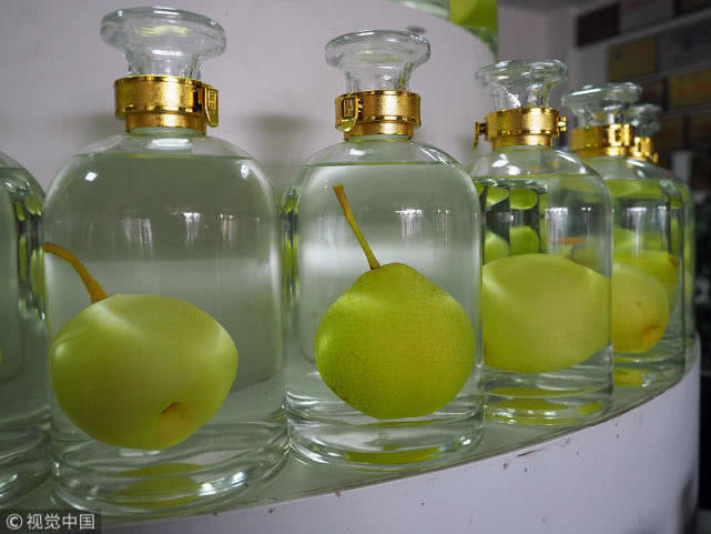 据悉,这款“梨酒”以长到瓶子里的当地优质鸭梨和优质高度白酒为原材料,经过特殊工艺酿造而成。 (来自:新闻摄影)