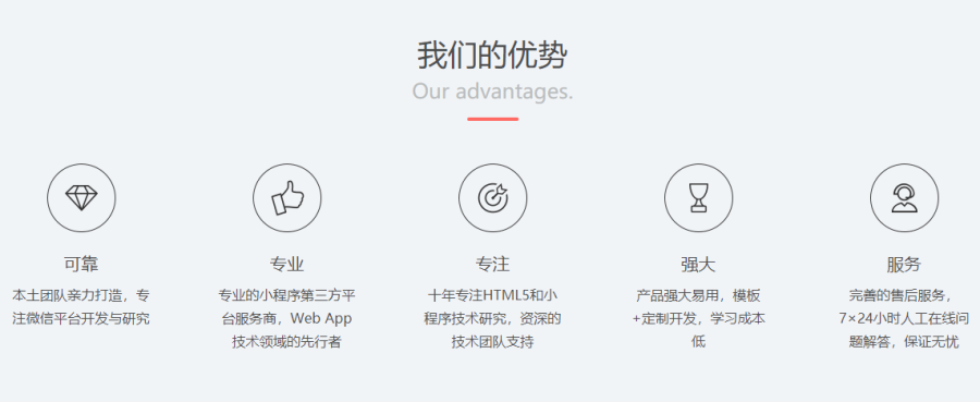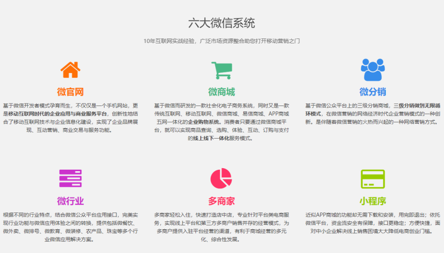 伍思网络视推动中国企业开展电子商务、实现信息化为己任;深入研究企业客户的实际需要,开创性地建立了适合中小企业需要的IT应用服务运营模式;运用先进的信息技术搭建起一个适合企业业务和管理需要的应用服务平台,并透过庞大的全球性商务网络,面对面地向企业客户提供全方位、标准化、一站式的IT应用服务和信息化解决方案。在项目过程中,伍思网络通过周密的策划、深入的调查、理性的分析、精妙的创意、专业的实施,并同客户的实际情况和具体需求进行良好结合,为不同类型的客户提供优质的互联网应用定制解决方案,帮助客户在新的全球化互联网环境中保持优势。