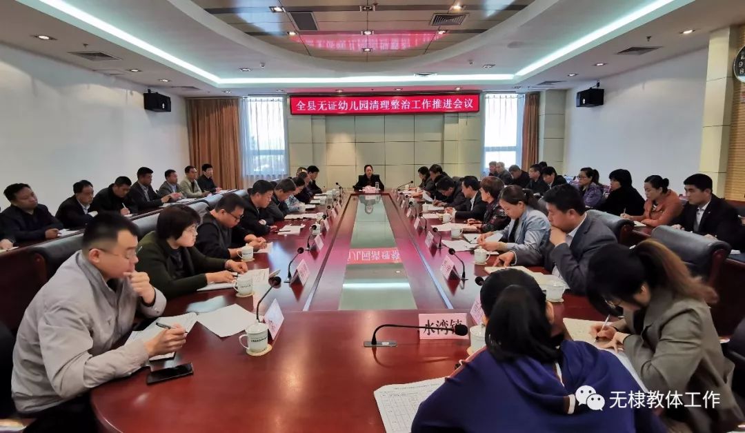 4月28日,无棣县无证幼儿园清理整治工作推进会议召开,无棣县教体局、法院、公安局、综合行政执法局、市场监管局、信访局分管负责人,各镇(办)政府分管负责人,教委主任,中心幼儿园园长参加会议,县府办副主任牛冬雪主持会议。副县长贾芳出席会议并讲话。