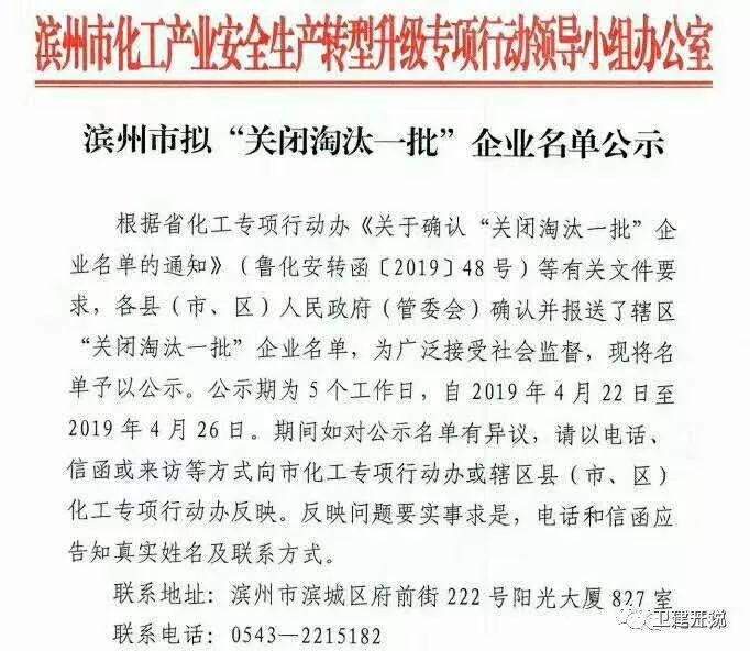 滨州市拟“关闭淘汰一批”企业名单公示
