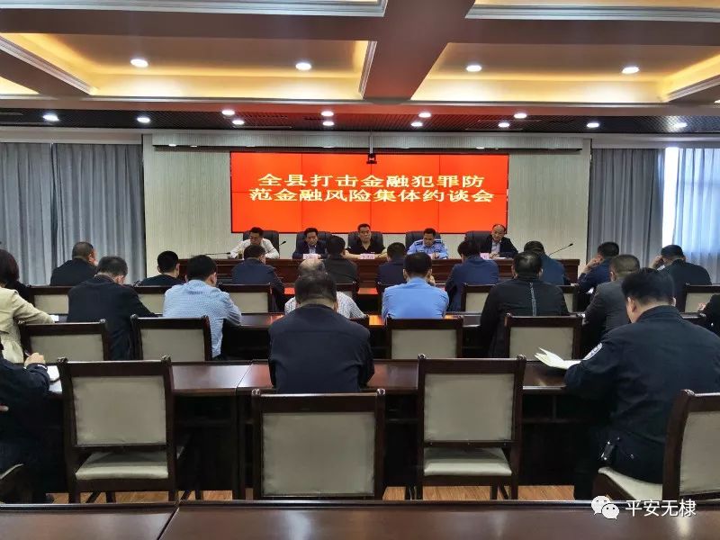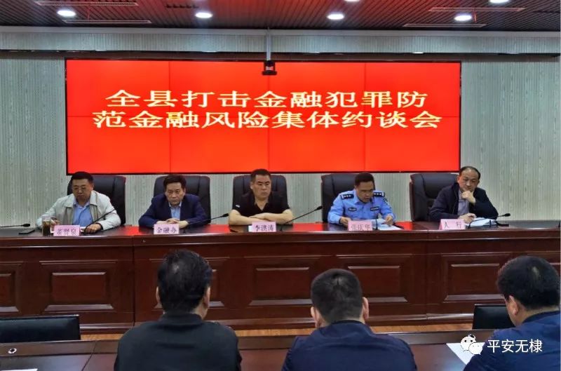 5月6日下午,无棣县召开打击金融犯罪防范金融风险集体约谈会,约谈20名不良贷款企业负责人。无棣县委常委、政法委书记李洪涛出席会议并讲话,副县长、公安局长张庆华主持会议并通报涉及不良贷款的企业和实际控制人及有关贷款情况,县委政法委、县公安局、县金融办、人行负责同志参加集体约谈。