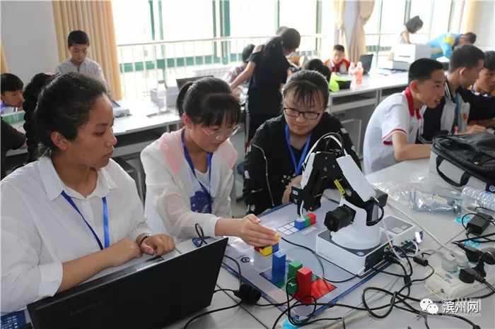 5月12日,以“礼赞共和国,追梦新时代”为主题的2019年滨州市青少年机器人大赛在无棣县职业中专学校举行。市人大常委会副主任吕德章出席活动。