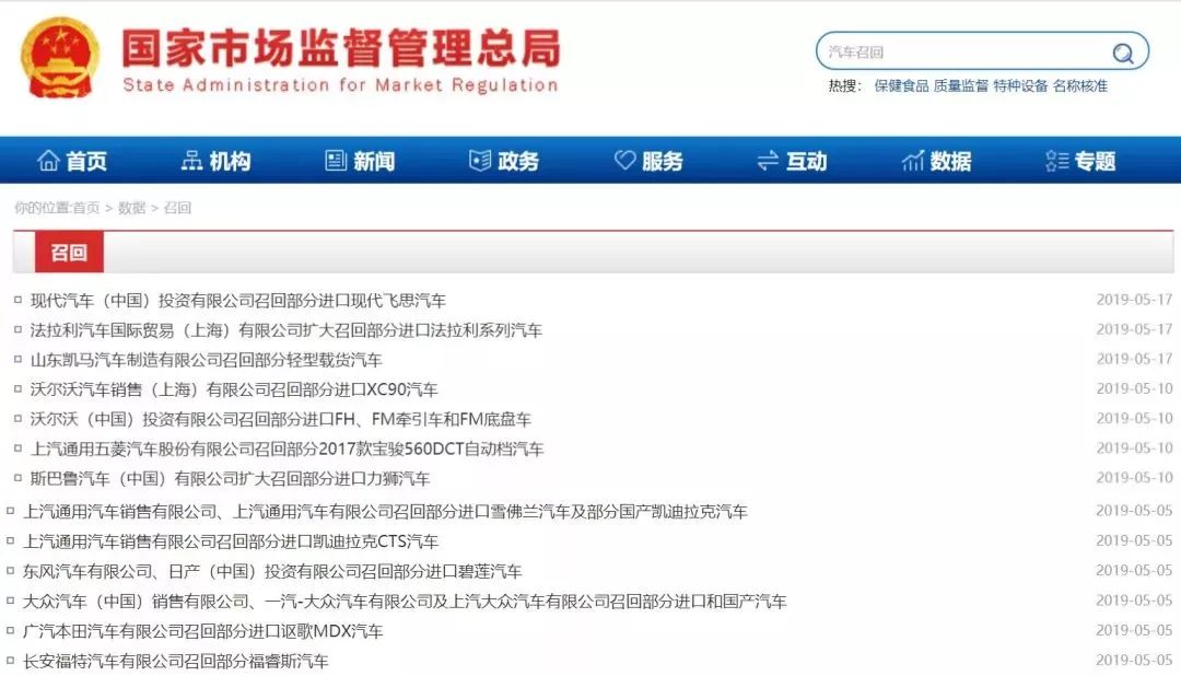 自2019年6月17日起,召回2012年4月5日至2014年8月28日生产的部分进口现代飞思汽车,共计6620辆。