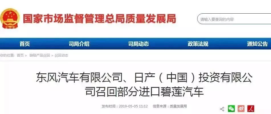 (二)日产(中国)投资有限公司召回1998年12月8日至2012年8月28日生产的部分进口日产碧莲汽车,共计2153辆。