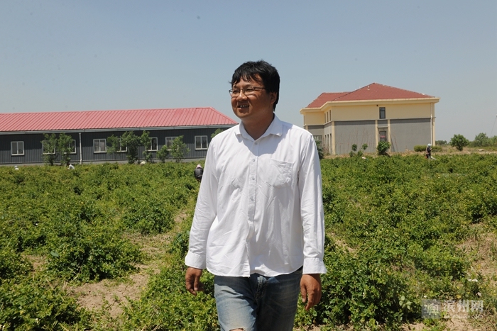 郭崇杰是无棣信阳镇人,大学毕业后一直在济南工作,2016年,在离家20多年后,他毅然辞去高薪工作返乡创业,在佘家镇注册了山东九帆科技有限公司,与山东大学、同济大学、山东中医药大学等高校联合打造了这一片中草药种植基地。据他介绍,基地采取“公司+合作社+农户”的方式运作,种子、肥料、技术等都由公司投入,农户以土地入股,以村为单位组建合作社,农户不仅能得到土地入股金和公司利润分成,还能在自己土地上“打工”,按照绩效挣工资,一举三得。