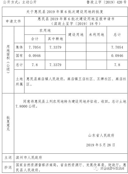 同意征收惠民县麻店镇王店社区、五牌社区、麻店社区总计7.8000公顷建设用地。