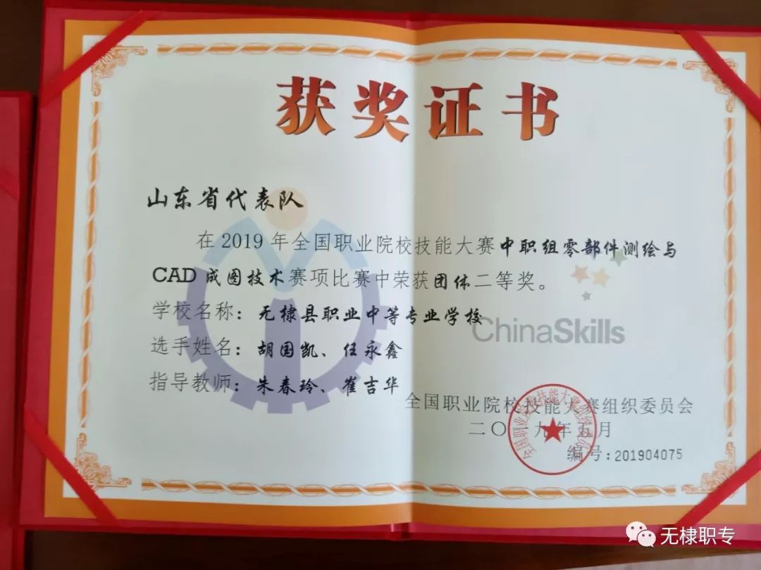 无棣县职业中专学生荣获全国技能大赛二等奖