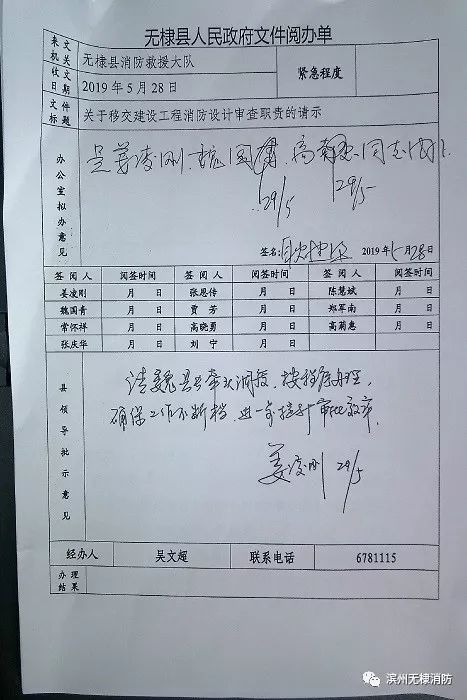 为扎实做好建设工程消防设计审查验收职责移交工作,落实便民利民举措,提升消防公共服务水平,近期,无棣大队向县政府提交了《关于移交建设工程消防设计审查验收职责的请示》,5月29日,无棣县主要领导对请示作出重要批示。