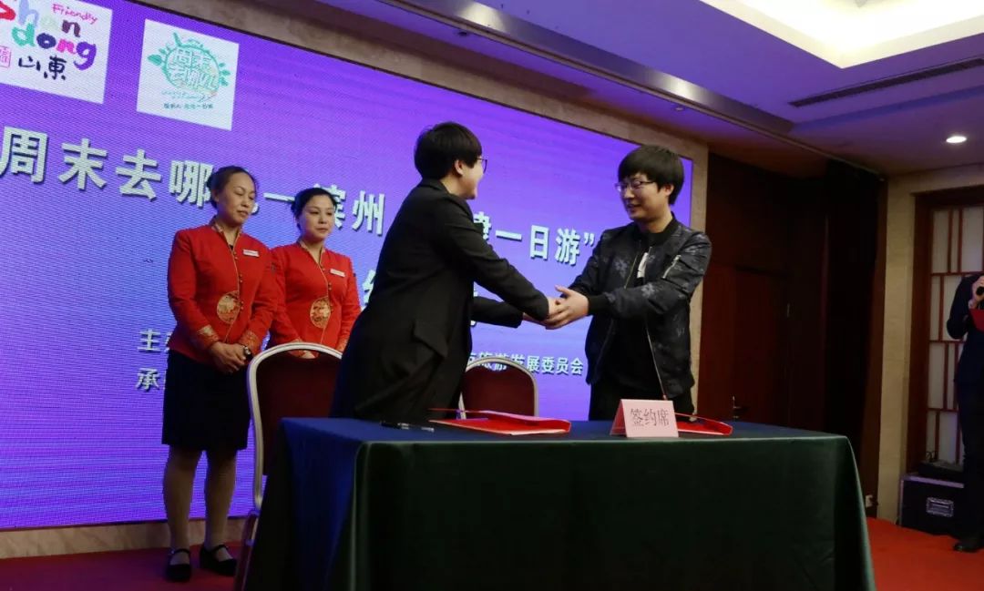 无棣黄河岛景区牟小艳主管与滨州春秋国际旅行社尚昊经理
