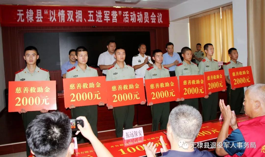 2019年7月24日上午,无棣县在武警中队召开“以情拥军、五进军营”活动动员会议。县委副书记、县双拥工作领导小组组长张宪强,县委常委、县人武部部长吴国华,副县长张庆华,县退役军人事务局局长贾维平等出席会议。会上,县武警中队指导员罗震代表驻棣部队汇报了工作开展情况;县领导为困难官兵发放了慈善救助金;部分爱心社会组织代表为部队官兵赠送了慰问金。张庆华主持会议,张宪强做了动员讲话。