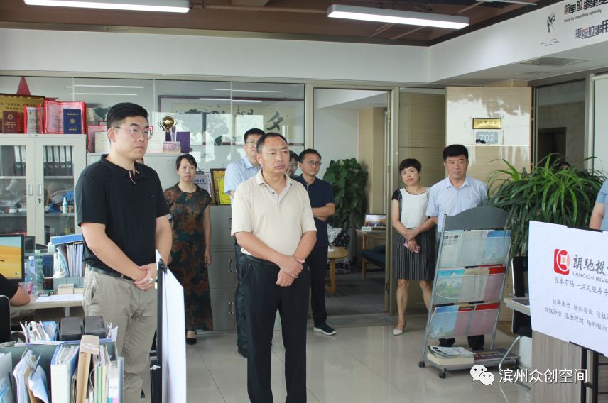 2019年7月30日上午,无棣经济开发区管委会副主任杨景鹏、无棣县科技局党组书记王秀丽、无棣县科技局副局长高桂美、无棣经济开发区管委会经发局副局长张学政来华翔众创空间考察,由滨州经济技术开发区管委会刘金刚、滨州市开发区科技局窦红心的陪同。