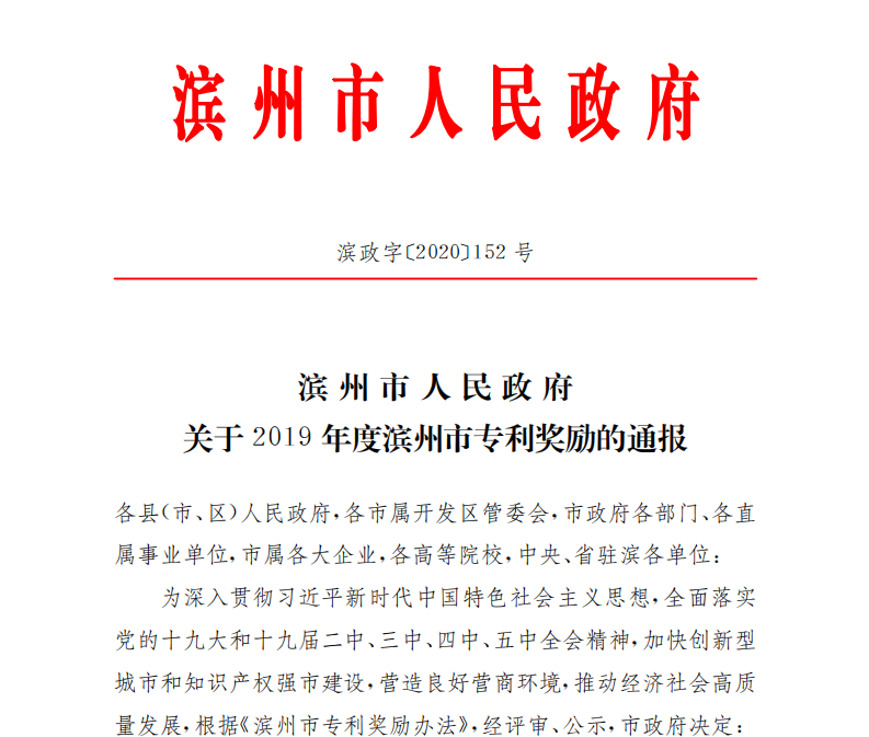 近日,滨州市人民政府下发《滨州市人民政府关于2019年度滨州市专利奖励的通报》,无棣县中海新铝材科技有限公司等 […]