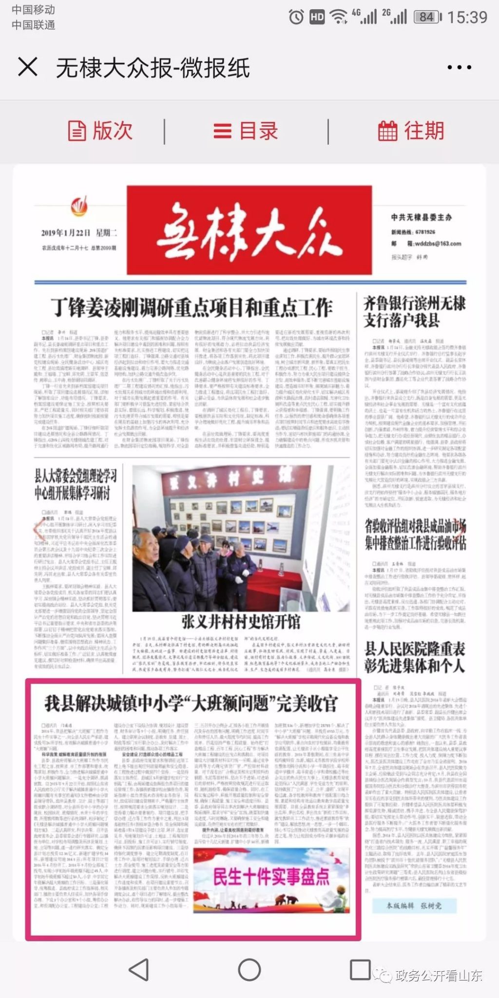 无棣县向社会公开“十件民生实事”完成情况