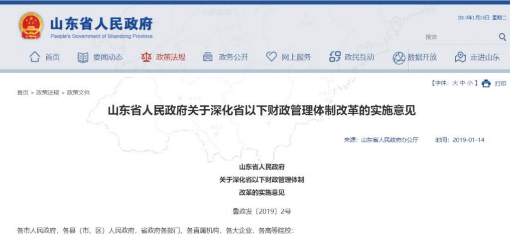 山东省政府发布 《关于深化省以下财政管理体制改革的实施意见》 部分基本公共服务领域 省与市县共同财政事权清单 […]